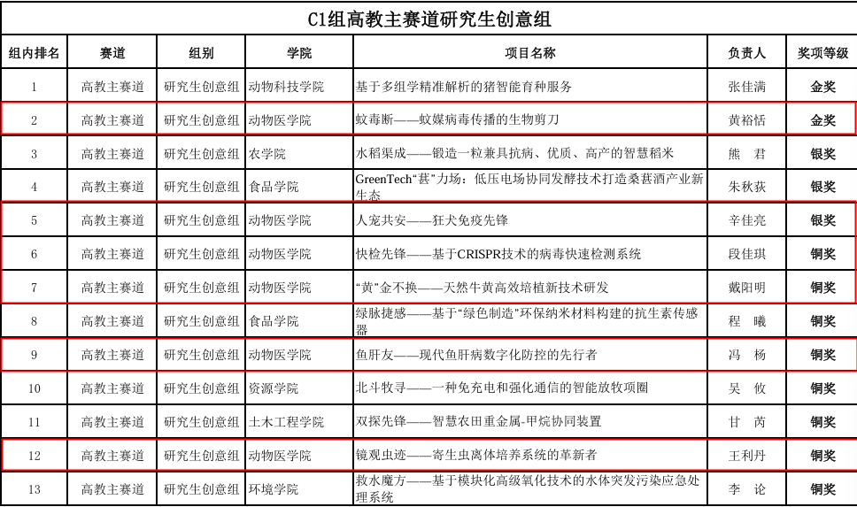 由教育部、中央统战部、中央网信办、国家发展改革委等部门联合主办,中国国际老员工创新大赛(2025)校级决赛中,公司团队表现卓越,高教主赛道研究生创业组:《蚊毒断——蚊媒病毒传播的生物剪刀》斩获金奖,项目针对蚊媒病毒传播难题,提出生物防控新策略;《宠共安——狂犬免疫先锋》获银奖,聚焦宠物狂犬病防控技术创新;《快检先锋——基于CRISPR技术的病毒快速检测系统》等4个项目获铜奖。高教主赛道本科创意组:《鸭疫无忧》项目获银奖,延续了其在省级赛事中的优异表现。