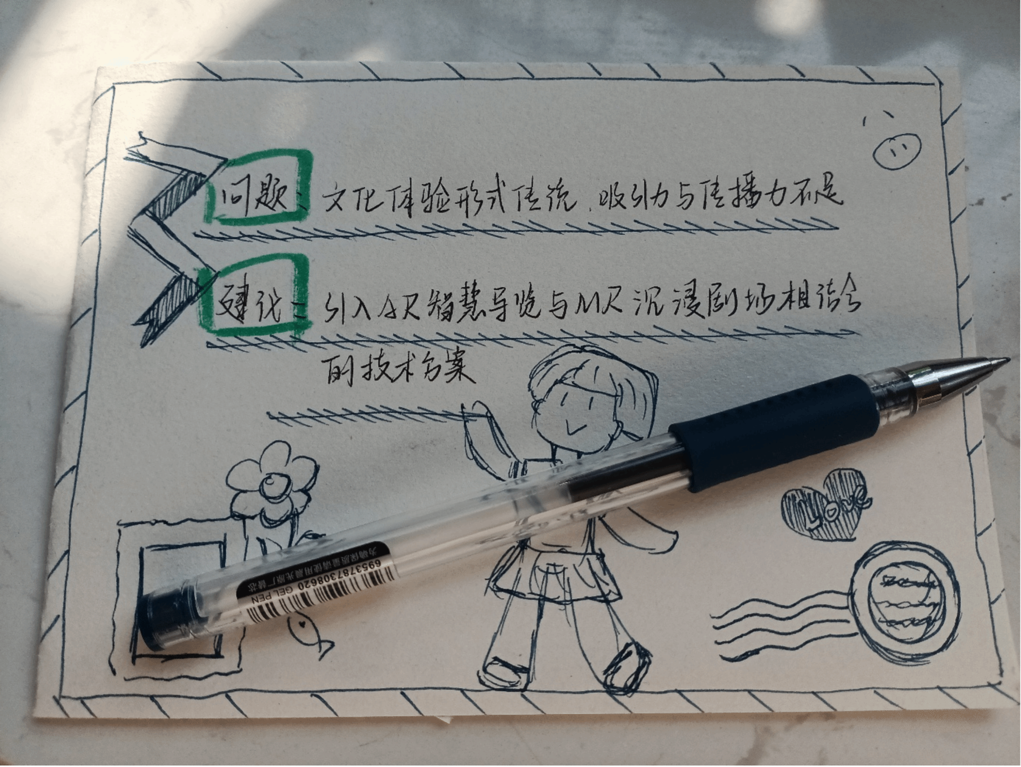 最具创意的环节,是队员们将调研成果转化为一张张“科创明信片”。明信片正面描绘家乡风貌,背面则清晰梳理问题,并给出涵盖农旅融合、智慧出行等方向的科技解决方案。这一形式,让抽象的技术与政策变得可触可感,也让乡土情怀与科创思维实现了有机融合。