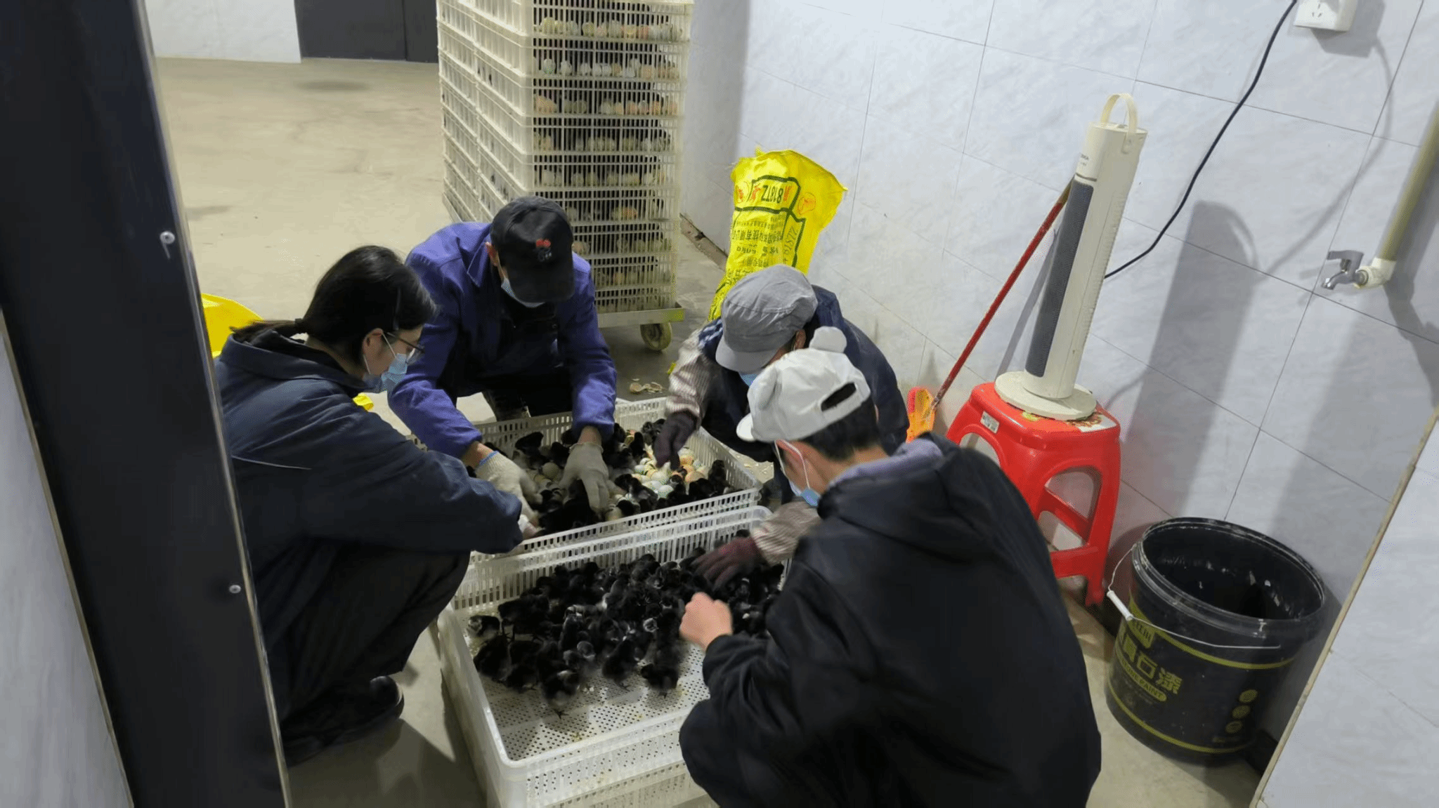在稳步推进实验的同时,团队还深度参与养殖场全流程生产工作,在实操中锤炼专业本领。在孵化环节,1月24日团队成员集中开展照蛋操作,借助灯光透视精准甄别受精蛋与无精蛋,及时剔除死胚,有效提升了孵化效率。待雏鸡顺利破壳后,团队成员迅速投入育雏工作,将新生雏鸡安全转移至恒温育雏箱,并同步清理孵化器内残留的蛋壳与杂物,为雏鸡健康生长营造干净、安全的环境。面对雏鸡运输任务,成员们提前调试运输车辆温湿度,确保雏鸡安全送至合作养殖户手中。此外,团队还定期开展养殖场清洁消杀工作,对鸡舍、孵化间等关键区域进行全面消毒,筑牢疫病防控安全防线。