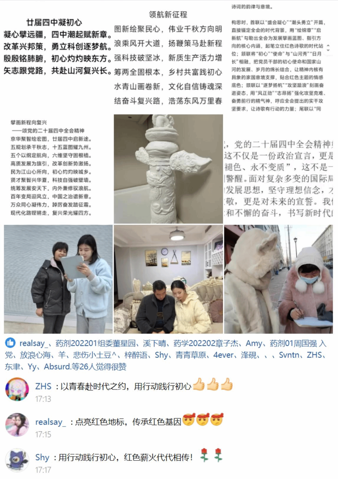 作品完成后,支部通过多个平台进行展示与分享。华表柱的庄严象征、诗歌中的真挚情感,在网络上引发了广泛关注与共鸣。这种以创作为媒介、以网络为阵地的传播方式,让红色故事跨越时空界限,在互动中浸润更多心灵,生动诠释了红色文化在新时代的生命力。