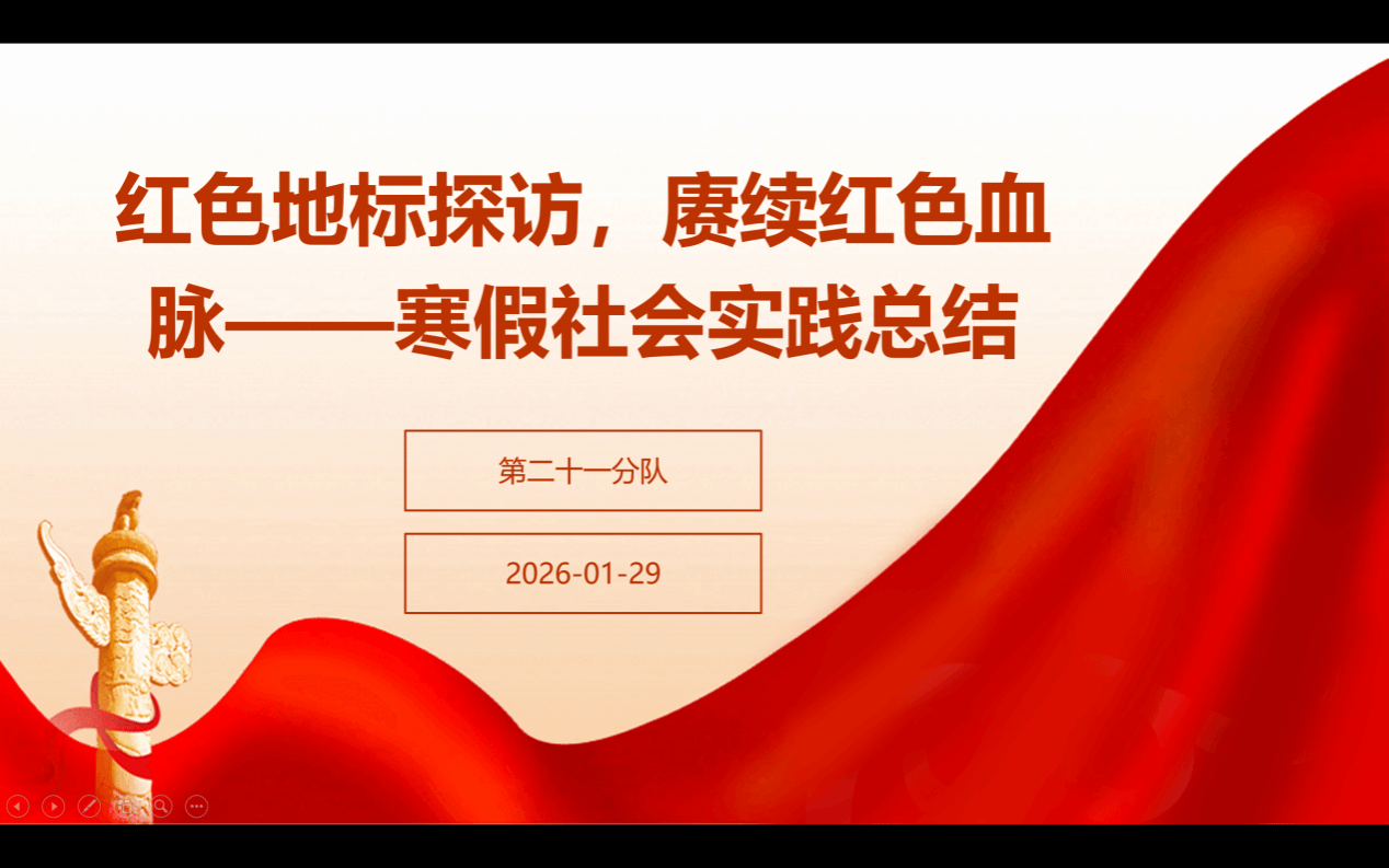 1月21日至2月2日,太阳网集团tcy8722“点亮红色地标,传承红色基因”第二十一分队10名队员围绕学习贯彻党的二十届四中全会精神与《中华人民共和国爱国主义教育法》,并结合党的创新理论宣讲与校本红色文化传承,开展了为期13天的寒假社会实践,通过线下走访、集体学习、视频制作等方式,在革命遗迹中触摸历史,在理论宣讲中强化担当。
