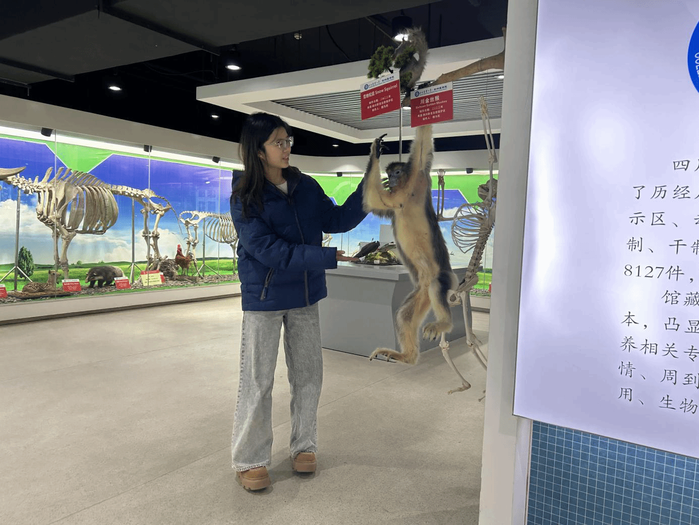 团队以馆藏标本为核心,对讲解内容进行了全面升级。通过对川金丝猴、大熊猫等国家重点保护动物标本,以及穿山甲、冬虫夏草等珍稀中药标本进行了深度挖掘,不仅补充了物种的生态价值、药用特性等专业信息,更通过查阅文献、专家咨询等方式,为每件标本赋予了生动的故事背景,让科普讲解更具深度与温度。
