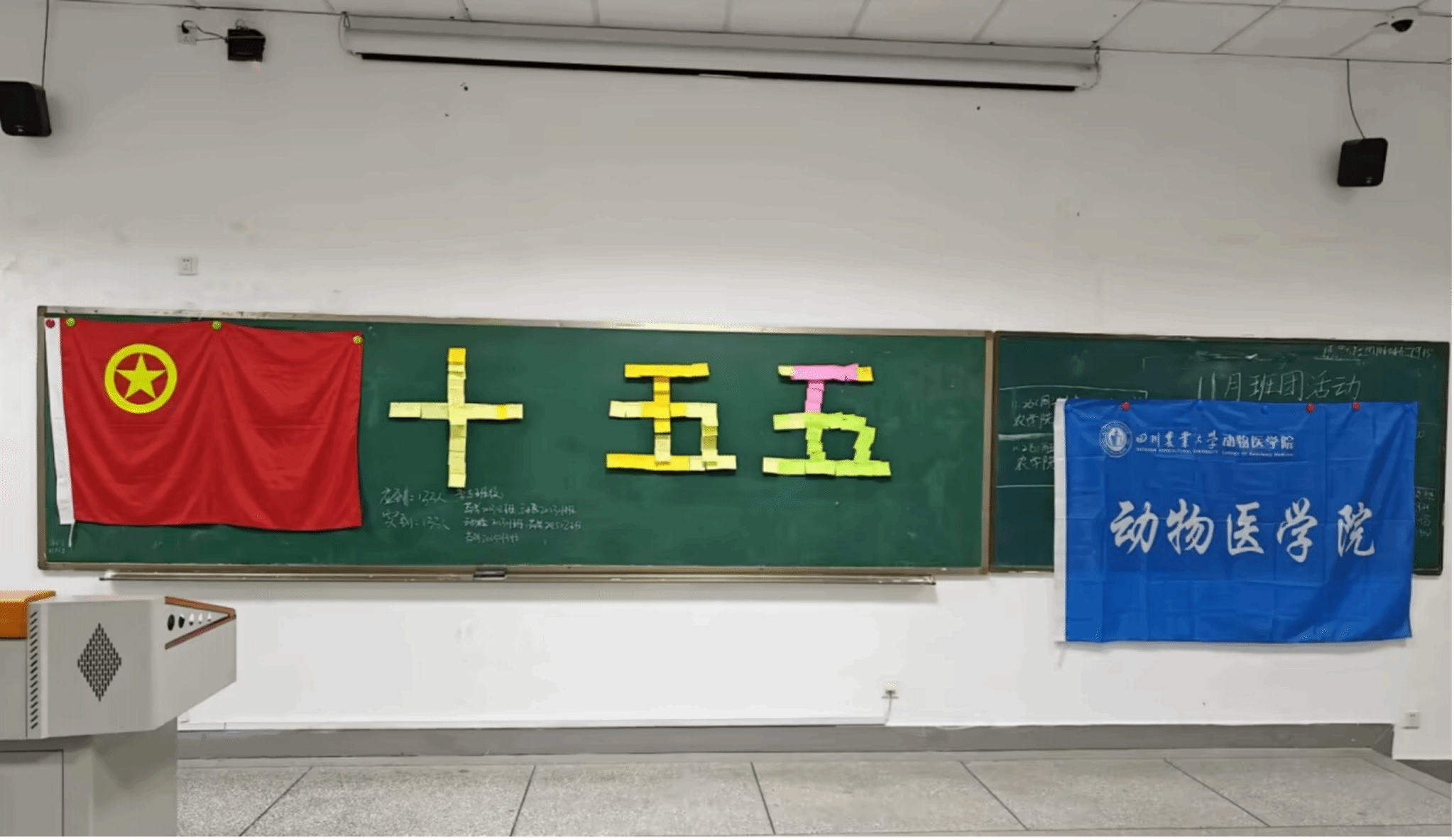活动尾声,学子们在便利贴上写下对“十五五”规划的美好祝福与个人青春梦想,工作人员将所有便利贴收集整理,拼贴成“十五五”字样展板,定格青春愿景。团员代表上台分享个人实践经历与成长感悟,各小班回顾2025年党建引领团建工作收获,结合全会精神反思自身不足,进一步凝聚了班级向心力。活动在嘹亮的团歌声中圆满落幕。