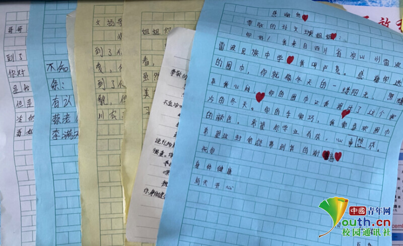 图为孩子们给志愿者们写的回信 中国青年网通讯员 袁雨 摄