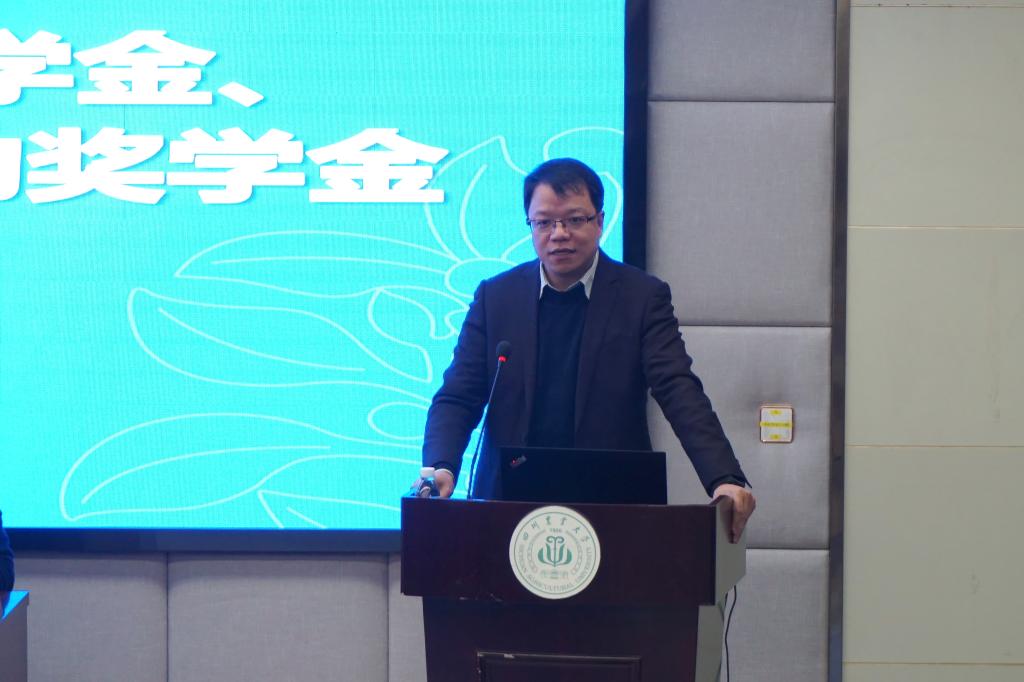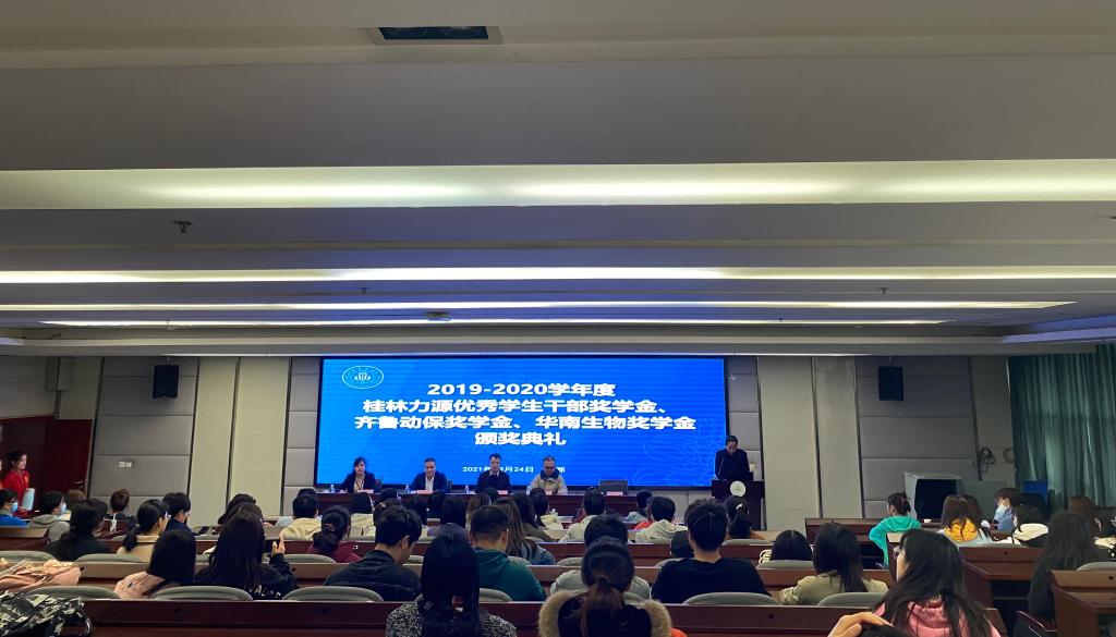 3月24日上午,2019-2020学年度“桂林力源优秀干部奖学金”“齐鲁动保奖学金”“华南生物奖学金”颁奖典礼在1教309会议室举行,桂林力源集团人力资源总监兼集团董事黄大鹏、齐鲁动物保健品有限公司四川省区总经理王钟翊、公司相关领导及120余名员工参加颁奖典礼。