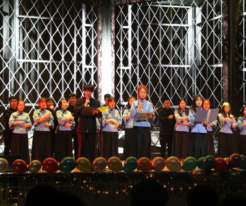 药剂202001班的同学通过合唱加舞台剧的形式演绎了《江姐》,以此来缅怀先烈,歌颂爱国主义精神,致敬川农大精神。