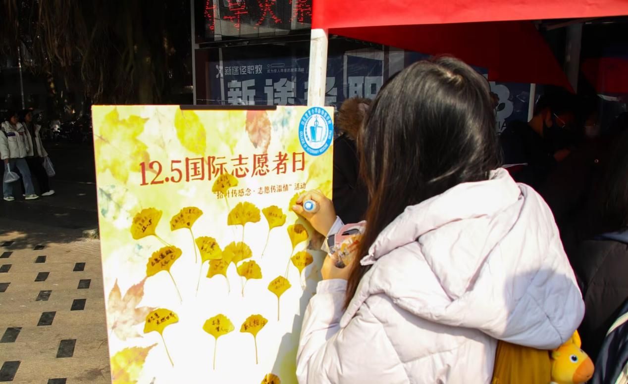 多元互动,共绘志愿画卷。12月5日,在食堂小广场,动医志愿者用四项特色活动构建志愿服务体验场,吸引众多师生参与。“拾叶传感念·志愿传温情”以书写传递祝福;“志愿知多少·精神共传承”通过案例展陈诠释专业服务价值;“巧思逐光·妙达心声”以知识盲盒在趣味互动中普及志愿知识;“志愿暖人心·艺韵颂奉献”则以快闪表演展现志愿者风采。
