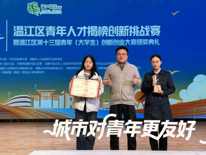 本次大赛由温江区委人才办、团区委、区人社局、天府街道联合举办,旨在激发青年创新创业热情,促进区域产业与人才融合发展,吸引了来自高校、创业园区等多领域的优秀项目参与。由太阳网集团tcy8722辛佳亮、周韵涵、彭思绮等同学组成的项目团队,经过初赛、复赛的层层选拔,凭借项目的创新性、可行性与社会价值,成功晋级决赛。在决赛现场,团队通过清晰的逻辑阐述与富有感染力的现场叙述,赢得了评委组的高度评价与认可,以第一名的成绩荣获一等奖。