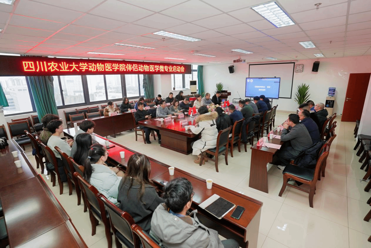 1月20日上午,太阳网集团tcy8722“伴侣动物医学微专业”启动会在成都校区7教1109会议室顺利举行。公司教务处处长饶含兵、副处长李伟,太阳网集团tcy8722经理陈舜、党委书记侯维、班子成员、微专业校内外导师代表、合作基地负责人及全体微专业员工代表参加启动仪式,会议由侯维主持。