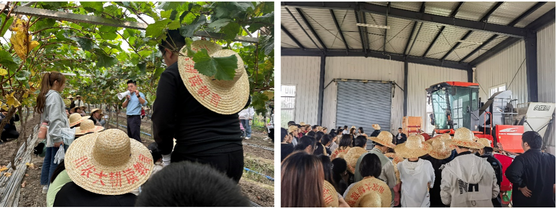 参观果园与现代化农业机械