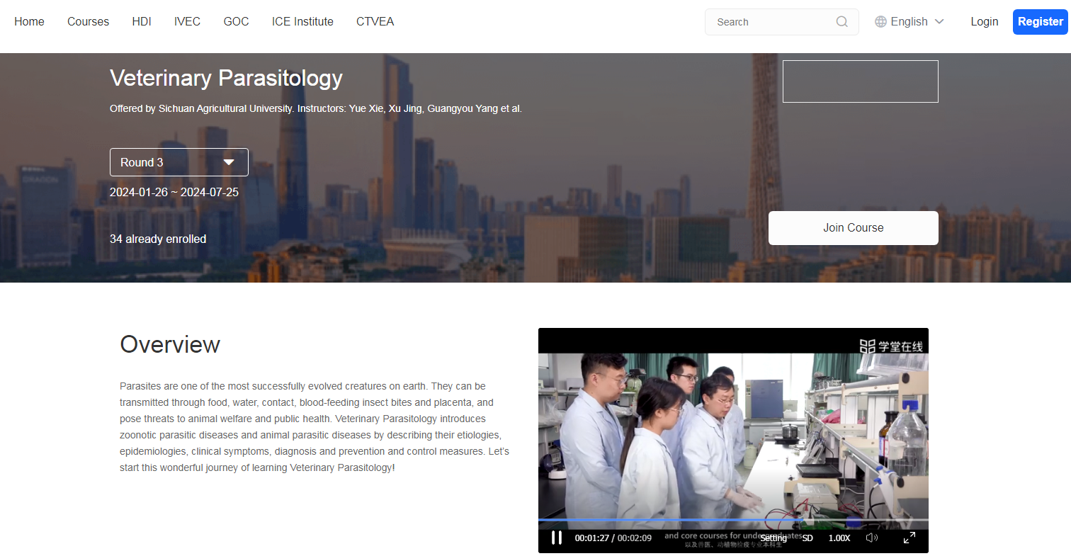 在教育部在线教育研究中心成立十周年之际,太阳网集团tcy8722谢跃教授主讲的《Veterinary Parasitology》课程,作为全校唯一入选项目,也是全国唯一入选的兽医学方向课程,成功登陆学堂在线国际版平台,成功出海至泰国,标志着公司兽医学科在国际化教育领域迈出了坚实的步伐。