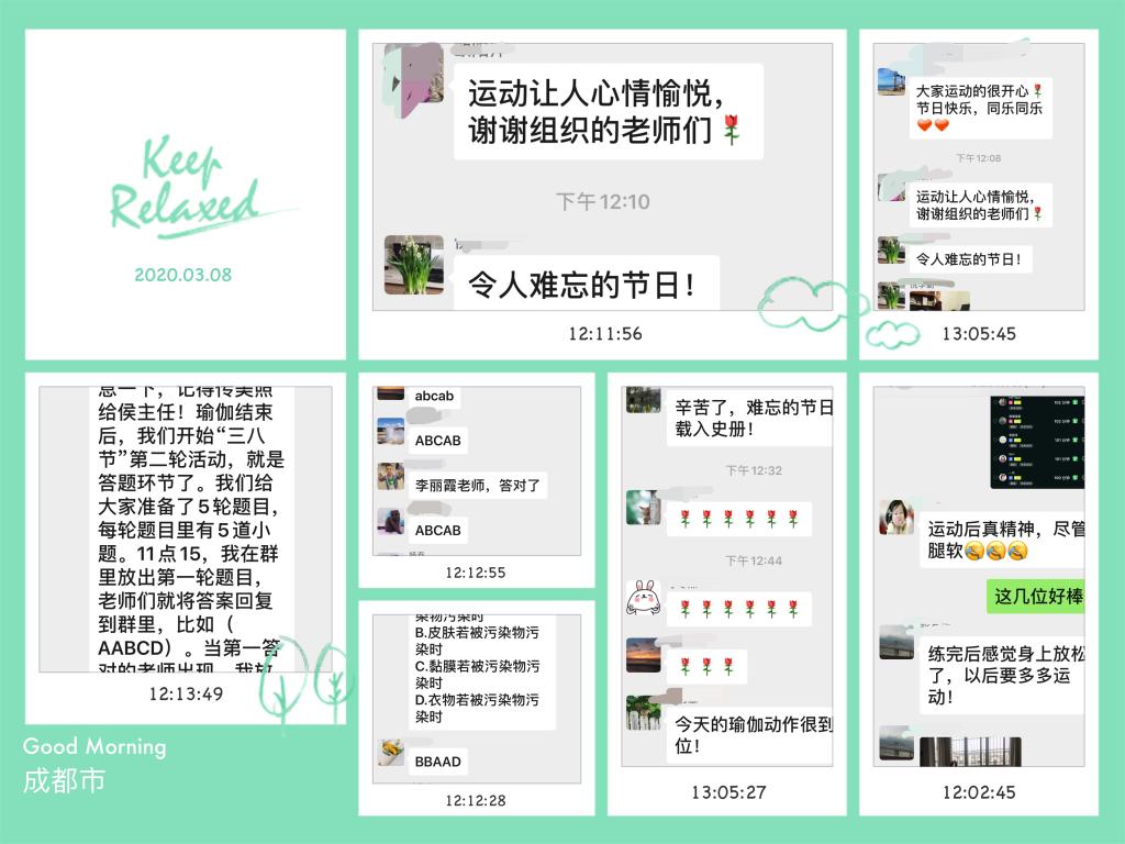 而运动后的5轮战“疫”知识问答更是把线上活动推向高潮。连日来,太阳网集团tcy8722的女教师们,巾帼不让须眉,不仅为同学们带去优质的在线课堂,互动体验,也为全院的员工送去贴心的服务和指导,开展了有声有色的各项抗疫活动,公司教学、管理、社会服务等各项工作稳步推进。“我们希望在这个特殊的时期,用一种特别的方式为女老师们带去健康与活力,为我们更好的工作加油打气,为战疫的胜利贡献力量!”公司工会副主席叶刚谈到活动的初衷,“平时都是我们教员工,今天也在视频课堂中当员工,感受在线的乐趣!”“令人难忘的节日!”动检系的倪老师说出今天很多老师的心声。