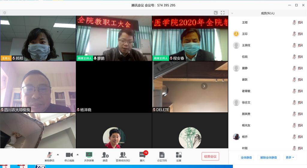 副经理贾仁勇就公司产品、研究生就业、科研工作、远程与继续教育等工作进行安排。他指出在疫情防控期间,各位研究生导师应切实做好公司产品工作,定期开展线上读书报告等活动,给毕业生同学做好毕业论文指导和就业指导,严把毕业生出口关。同时,他强调各位教职工应利用假期,积极做好国家自然科学积极项目、双支计划申报工作,上网教课程的老师也应利用假期,提升网教课程课件制作质量,做好网教论文指导和评阅。