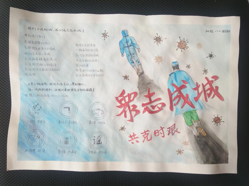 汇聚青春力量,共克新型肺炎。支部同学除奔赴一线开展抗疫工作外,还推出了汇聚支部正能量的声援视频,色彩明亮,防疫知识丰富的“凛冬过后,必是暖阳”主题手抄报,还有为武汉为中国加油呐喊的声援书法作品等丰富的线上文创作品,为疫区传达“山海皆可平”的心声,纠正疫情误区、击散谣言,同时引导同学正确认识疫情,增强信心,凝聚强大正能量。