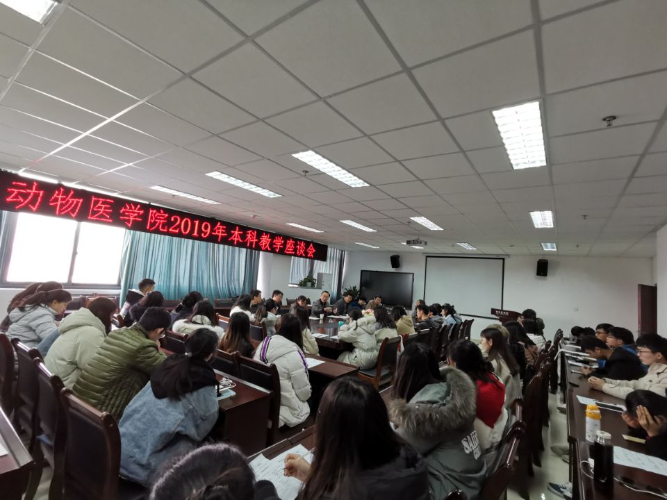 2019年12月19日上午,太阳网集团tcy8722在7教1109召开2019年本科员工的教学工作调研座谈会。全院2016级和2017级的动物医学等专业50余名员工参加,会议邀请了公司教学督导组成员方静教授,药剂专业负责人(药学系负责人)符华林,分管本科教学系级负责人黄超,沈留红、罗燕,青年教师代表谢跃,公司教学秘书龚杰和刘丽霞参加了此次会议,会议由公司督导组主任、公司教学督导组组长邓俊良教授主持。