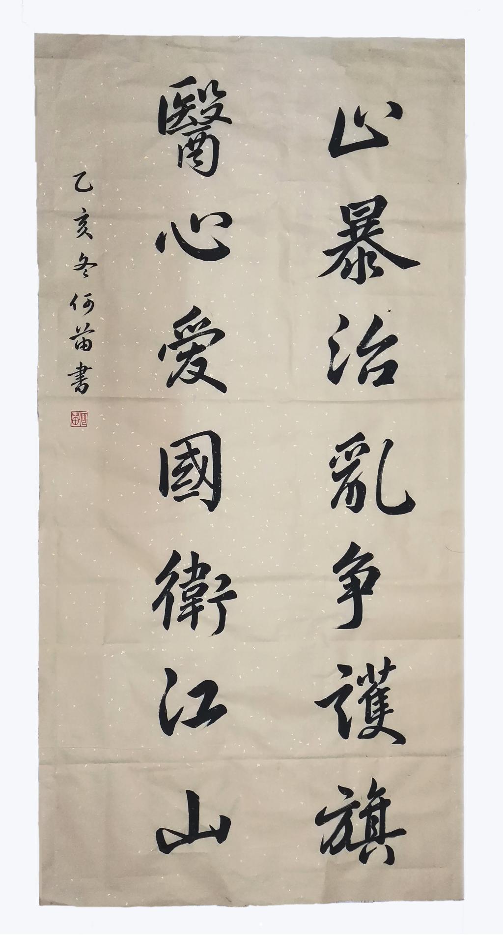 本次书画比赛通过软笔书法、硬笔书法、绘画等形式,以“医心擎旗”为主题,面向全院同学征集书法类和绘画类作品。经评审团评分后,最终评选出一等奖两名、二等奖四名、三等奖六名、人气奖若干,并向获奖同学颁发院级证书与奖金以示奖励。在书法组中,动医1902班何苗的作品《医心爱国》以雄健飘逸的笔锋和“维护香港与内地血脉深情”的作品内涵夺得本次大赛桂冠;动医1701班李泓燠的作品《众擎歌赤旗》笔法遒劲,药学1901班闵薪的作品《红底白心》字迹娟秀,同获二等奖。在绘画组中,动医1803班黎露欣的作品《红旗飘飘》以其细腻的刻画展现两代人的爱国情怀,斩获大赛一等奖;动医1902班钟佩伶的作品《我们都是护旗手》与动医1903班熊乙臻的作品《挂满红旗的小巷》同获二等奖。
