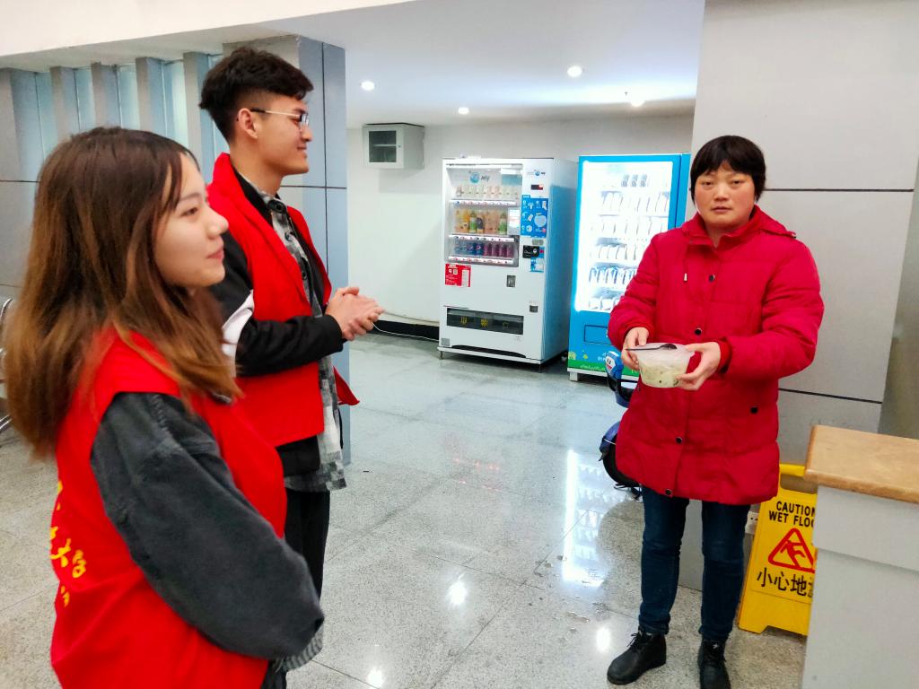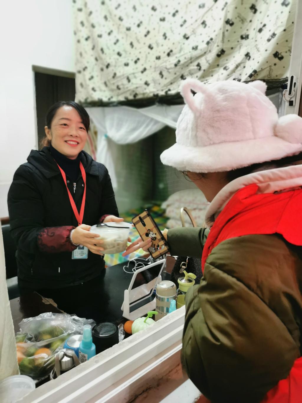 当热气腾腾的汤饺出现在正在站岗的保安眼前时,原以为是某位员工打算暂放的外卖,没想到却是员工带来的惊喜。“还冒着热气呢!同学们太有心了!谢谢!”惊喜之余,保安也表示感动。“阿姨,您的汤饺到了,请接收!”“快递组”志愿者如期将热腾腾的饺子送到员工公寓宿管的手中,“感谢您一直以来为我们的付出,祝您身体健康!工作顺利!”接过满满一碗的饺子,宿管露出惊喜的笑容……