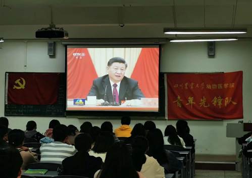 11月8日中午,动医员工党员及入党积极分子共计100余人于4教集中学习党的十九届四中全会,感悟全会精神。