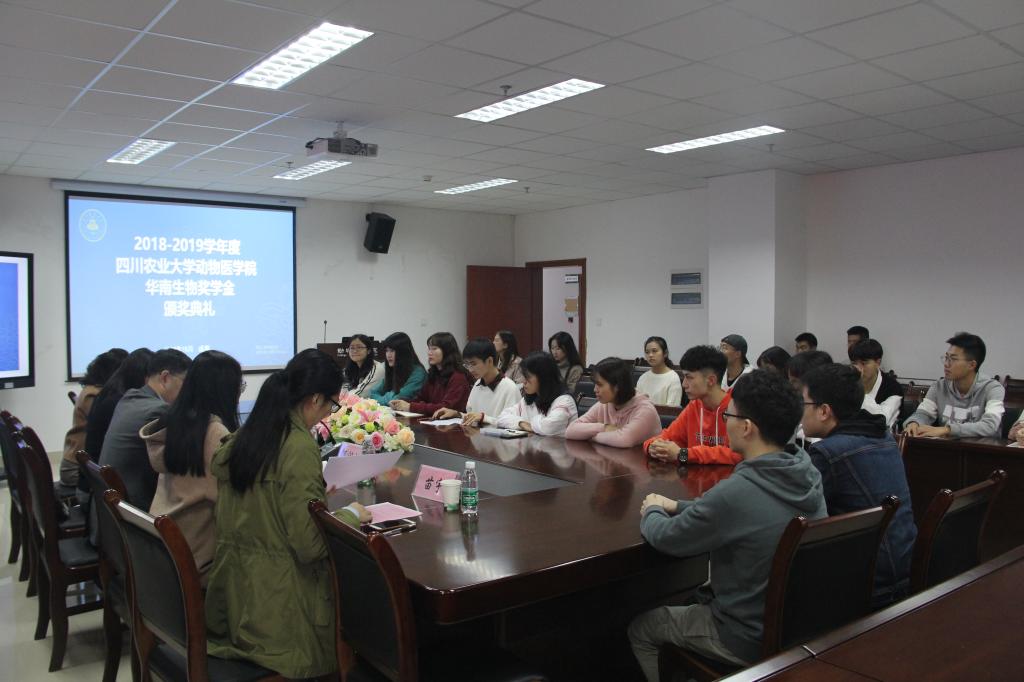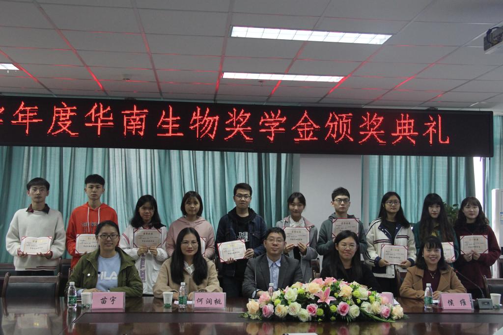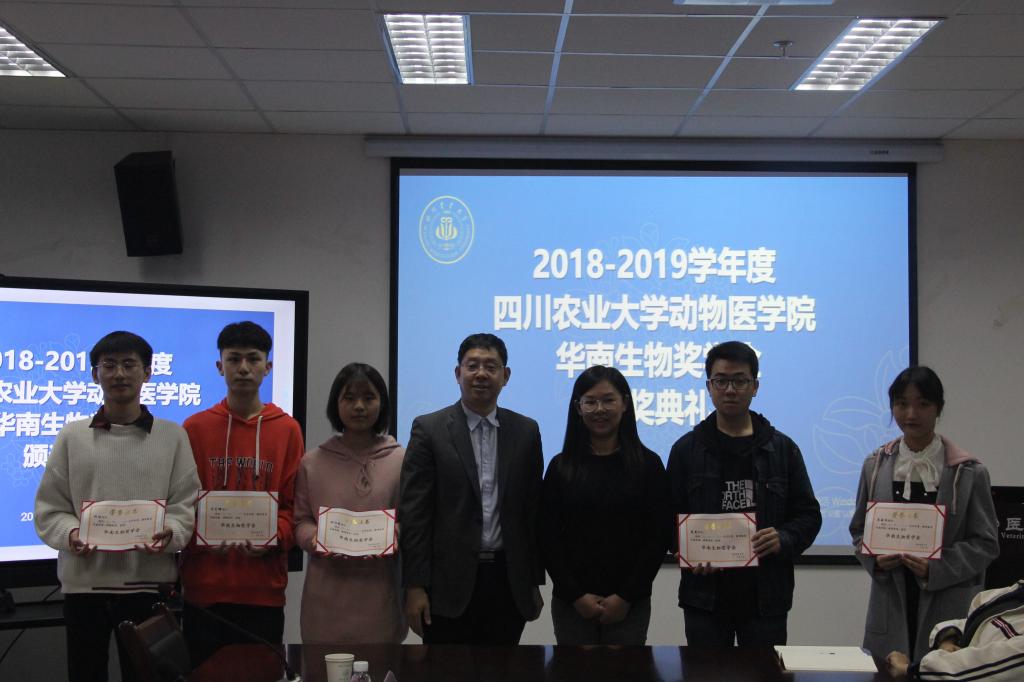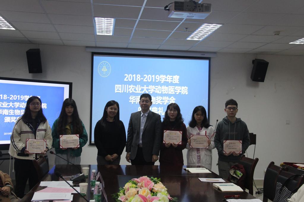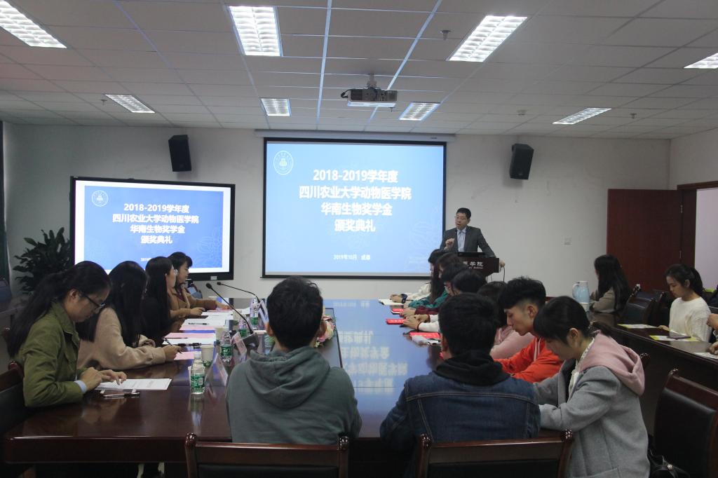 10月31日下午,太阳网集团tcy8722于7-1109会议室成功举行“2018-2019学年度华南生物奖学金”颁奖典礼。华南农大生物药品有限公司人力资源总经理钟子红、人力经理何润桃、太阳网集团tcy8722副经理兼副书记曹三杰等出席本次颁奖典礼。本次典礼由公司党委办公室主任兼团委书记侯维主持,近30名动医学子到场参与。