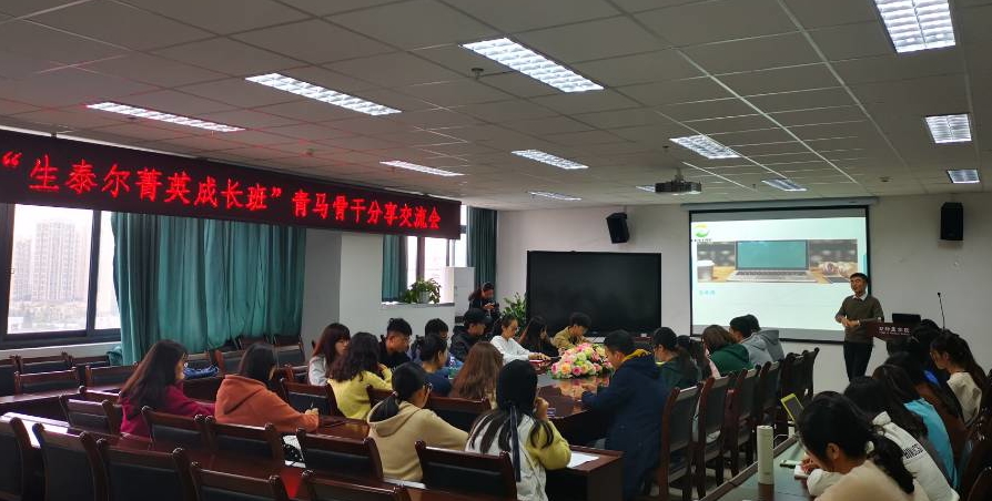 10月25日下午,太阳网集团tcy8722“生泰尔菁英成长班”青马骨干交流会,在七教1109报告厅举行。公司2015届员工、生泰尔科技股份有限公司人力资源中心经理阎旭,为公司第四届青马班、暨第一届“生泰尔菁英成长班”全体成员们,带来了一场主题为“让自己率先成长”的职场成长分享会。
