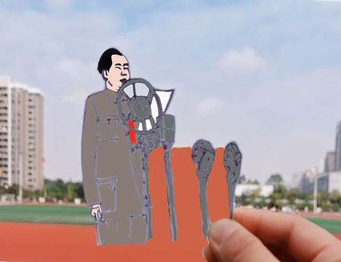绘图的后期用剪纸来修饰。支部同志发散思维,用一把剪刀将图画勾勒出更具体的轮廓,仿佛是中国的一次次规划都在一点一滴中积累,稳步前进,不断发展,将之变成事实,用实际行动在告诉人们,中国始终在进步呀!