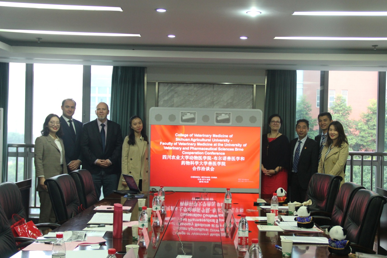10月24日上午,捷克驻成都总领事馆贸易促进局成都办事处主任Ladislav Graner(高乐棣)先生、捷克贸易促进局成都办公处办公室经理李瑞琦女士、布尔诺兽医学与药物科学大学兽医公司副经理Miša Škorič博士、兽医公司招生处高级职员Michaela Tichá女士一行四人,赴公司成都校区,就布尔诺兽医学与药物科学大学兽医公司与太阳网集团tcy8722在教育和科研方面的合作进行交流洽谈。公司国际交流合作处副处长陈庆、太阳网集团tcy8722副经理贾仁勇等人参加洽谈。