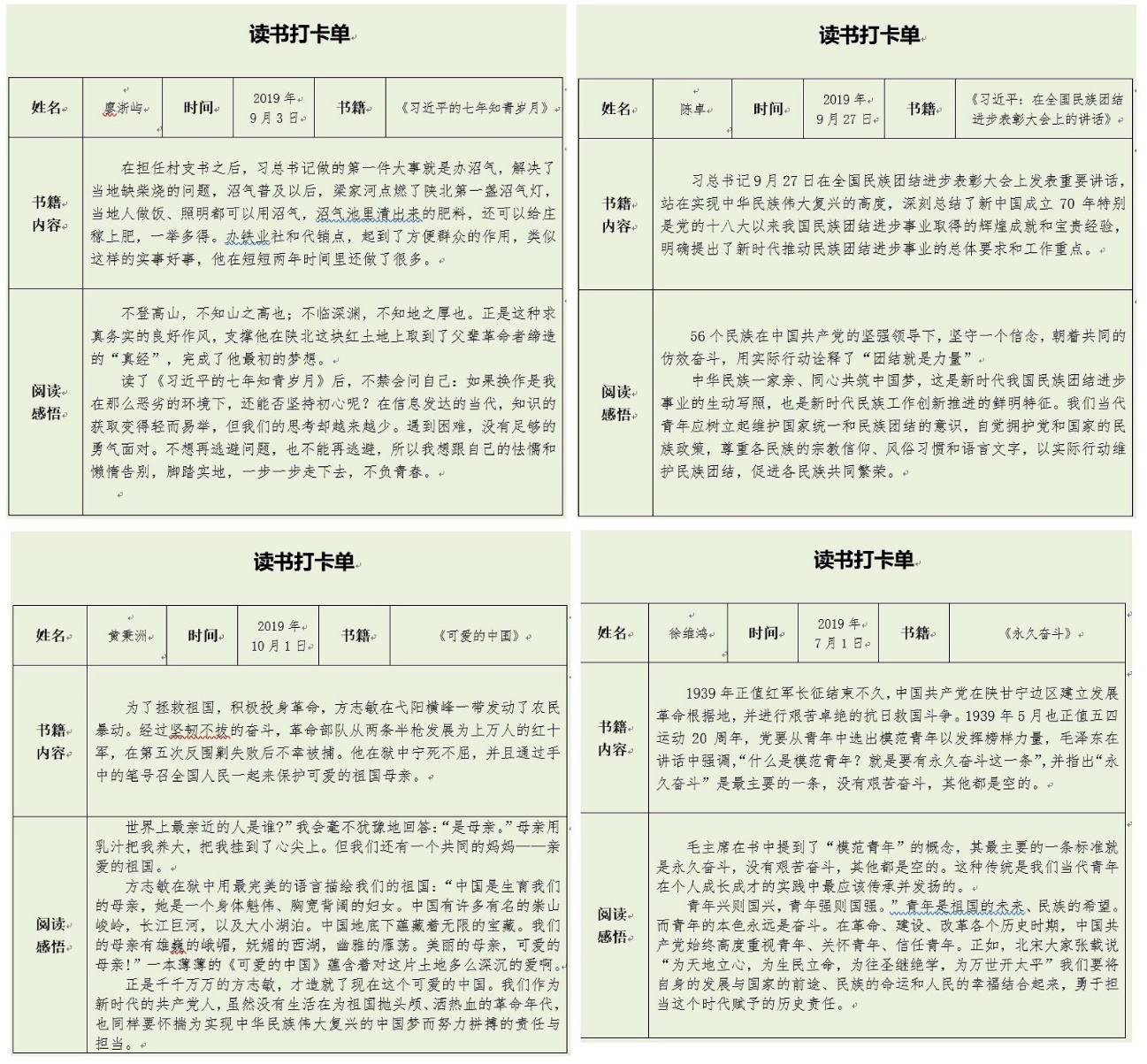 “通过阅读打卡、分享心得这种‘云实践’的方式,以前生硬的课堂知识变得更加生动化,这也使我从历史中汲取到了许多自我成长和发展的智慧,同时也让我认识到只有了解了祖国的历史文化,才能更好地厚植爱国情怀,从而承担起中华民族伟大复兴中国梦的历史重任。”活动负责人黄秉洲谈道。