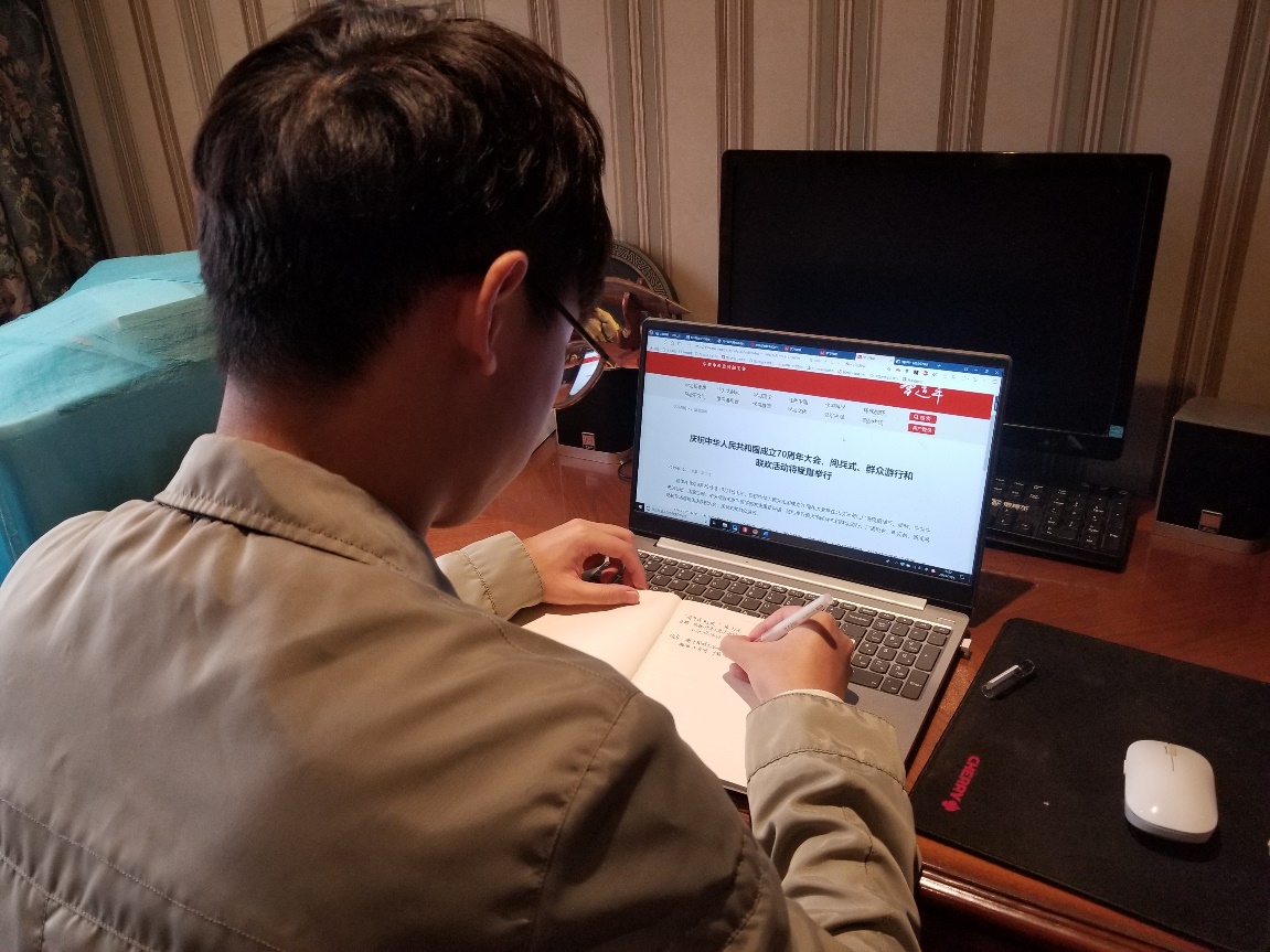 图为青年学子记录“学习强国”读后感,学习时政,感悟新时代