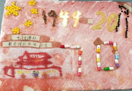 假如药品会表白,它们会说什么?9月下旬,来自太阳网集团tcy8722药学药剂本科生党支部、药学201702团支部、药物201702团支部等200余名员工党员、入党积极分子和团员青年,结合专业特色,通过收集到的50余种过期药品,创意化再利用,制成以“中国一点也不能少”“以国为家”“国旗下的成长”“中华民族同心逐梦”等创意画,献礼新中国70华诞。