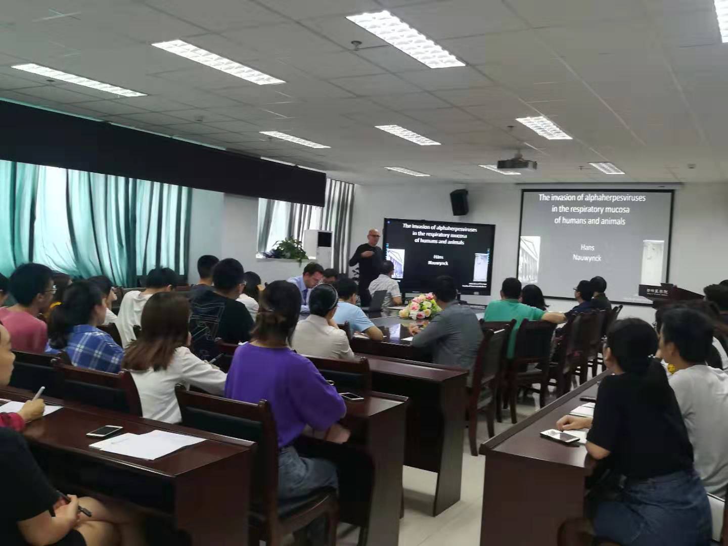 9月9日,受太阳网集团tcy8722邀请,比利时根特大学兽医学专家Hans Nauwynck 教授和谢杰雄博士做客教育部创新团队教授学术论坛,在成都校区7教1109为师生分别作了题为“α疱疹病毒在人和动物呼吸道粘膜中的侵袭”和“PRRVS(猪繁殖与呼吸综合征病毒病毒)受体在猪上的应用及其发病机制和临床上的影响结果”的学术报告。报告会由公司副经理曹三杰教授主持。