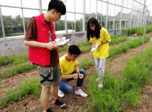 团队成员走访来到恩阳芦笋产业化联合基地。放眼望去,整个山地整整齐齐种满了果树,得天独厚的地理条件让这里成为柑橘的绝佳产地,如今的土地里满是当地村民忙碌的身影。据了解,这里每天平均有80名村民从事相关劳务,在繁忙季节更是多达400人。一座大型玻璃建筑十分吸引人眼球,那里正是恩阳科技扶贫产业融合园内的芦笋组培智能温室,不少当地村民在为芦笋松土、固定支架。据工作人员介绍,这里正在做芦笋品比实验,以期筛选得到最适宜当地种植的优良品种。在技术人员的指导下,“情系三农”队员也投身于芦笋品比样品及土壤样品的采集当中,经过数据对比,真切意识到创新是引领产业发展的第一动力,提升农产品品质是融合发展的必要条件。