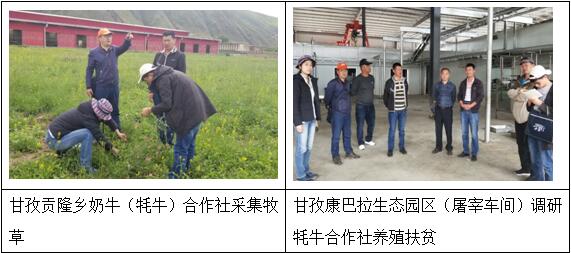6月28-29日,左之才和余树民两位教授与甘孜县组织部、农业农村局和科技局进行了牦牛产业扶贫技术交流,并深入甘孜藏族自治州甘孜县贡隆乡奶牛(牦牛)合作社、卡攻乡格上格下集体牧场和康巴拉生态园区(牦牛肉产品加工)开展调研与牦牛养殖技术指导。期间,专家一行就牦牛饲草种植、放牧、牦牛补饲技术,消化不良、寄生虫等疾病防控及牦牛肉品分割与加工技术进行了交流。