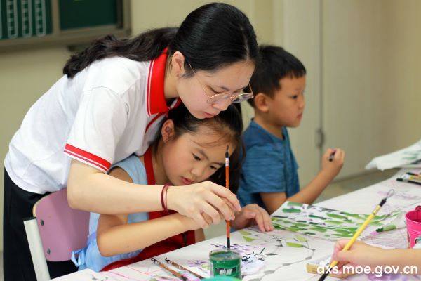 每一笔、每一画,千年古韵透过孩子们手腕、指尖流淌于宣纸之上。几个小时的国画启蒙,孩子们迈出了认识中华千年文化瑰宝国画的第一步,在震撼中体会到中国文化之美,为“传承人”的身份感到自信骄傲。