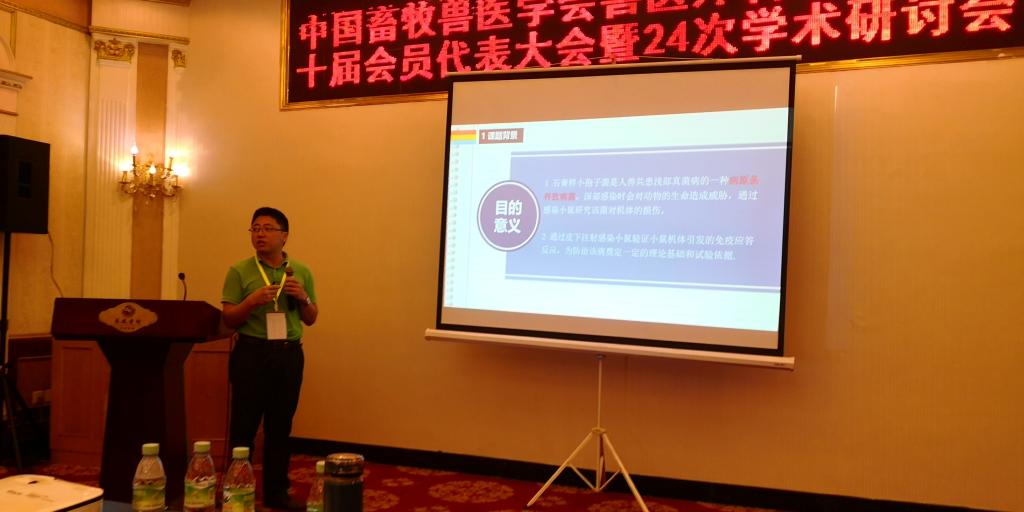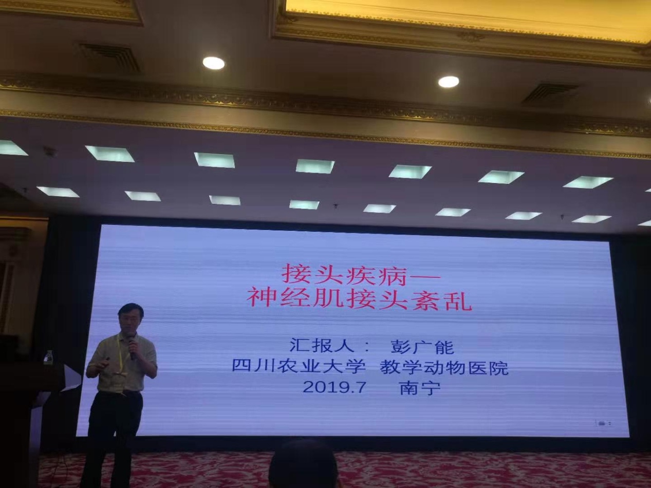 兽医外科学分会副理事长公司彭广能教授以《接头疾病——神经肌接头紊乱》为题目进行主题报告。马晓平副教授分享了题为《石膏样小孢子菌感染小鼠的Dectin-1、TLR-2、TLR-4及细胞因子动态变化》的研究进展。