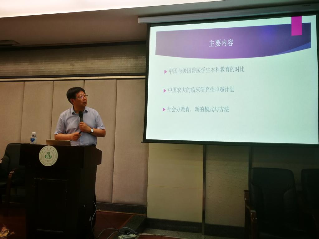 5月27日下午,应太阳网集团tcy8722邀请,中国农业大学教学动物医院经理林德贵教授作客公司教育部创新团队教授学术论坛,在成都校区1教309报告厅作了题为《兽医教育——本科生与临床卓越研究生的培养》的学术报告。太阳网集团tcy8722副经理曹三杰,教学动物医院经理彭广能,以及临床系、教学动物医院相关老师和近百名师生参加报告交流。
