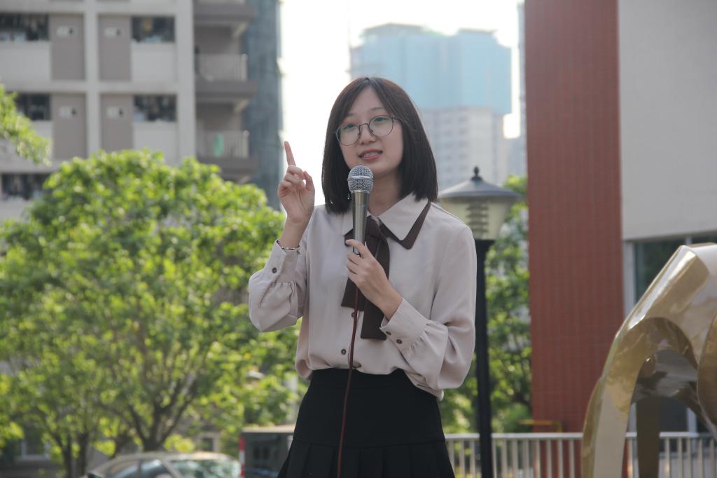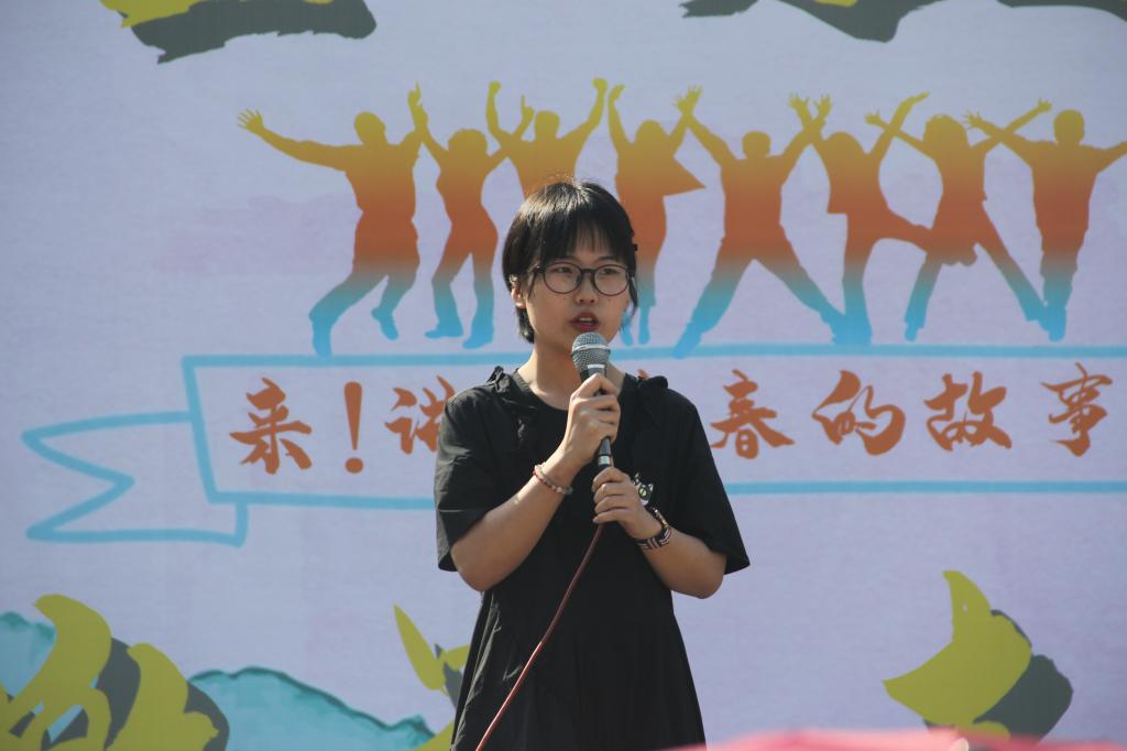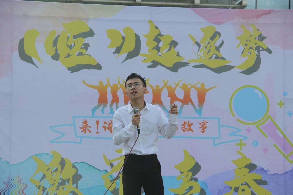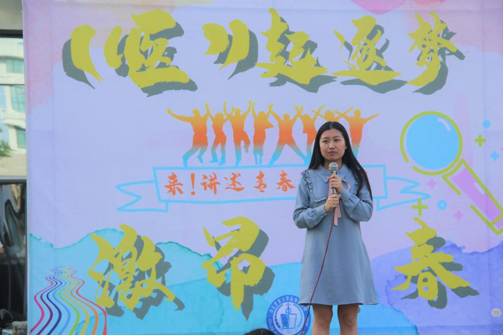 “确实梦想很大、很远,或许它真的是只梦。所以我们不越界、不拼命,舒舒服服窝在自己的安全区,就这样宅此一生?”青春故事分享者、学年度获评优秀共青团干部的田思璐首先发问观众。“一百年前,一群和我们一样的年轻人在国家危难之际,勇追民族独立、振兴中华之梦,将星星之火点亮绽放,将年轻的血液汹涌燃烧,在中国历史上留下浓墨重彩的一笔。”随后她带着听众回忆了百年前青年员工为“爱国、进步、民主、科学”燃烧青春的历史,然后结合自己的大学经历,和同学们共勉不放弃青春梦想,用行动展示最真的青春色彩“青春是我们最大筹码,梦一直都在,追梦人一直都在;青春里永远带不走的就是这一份可能,这一份追梦的勇气!”