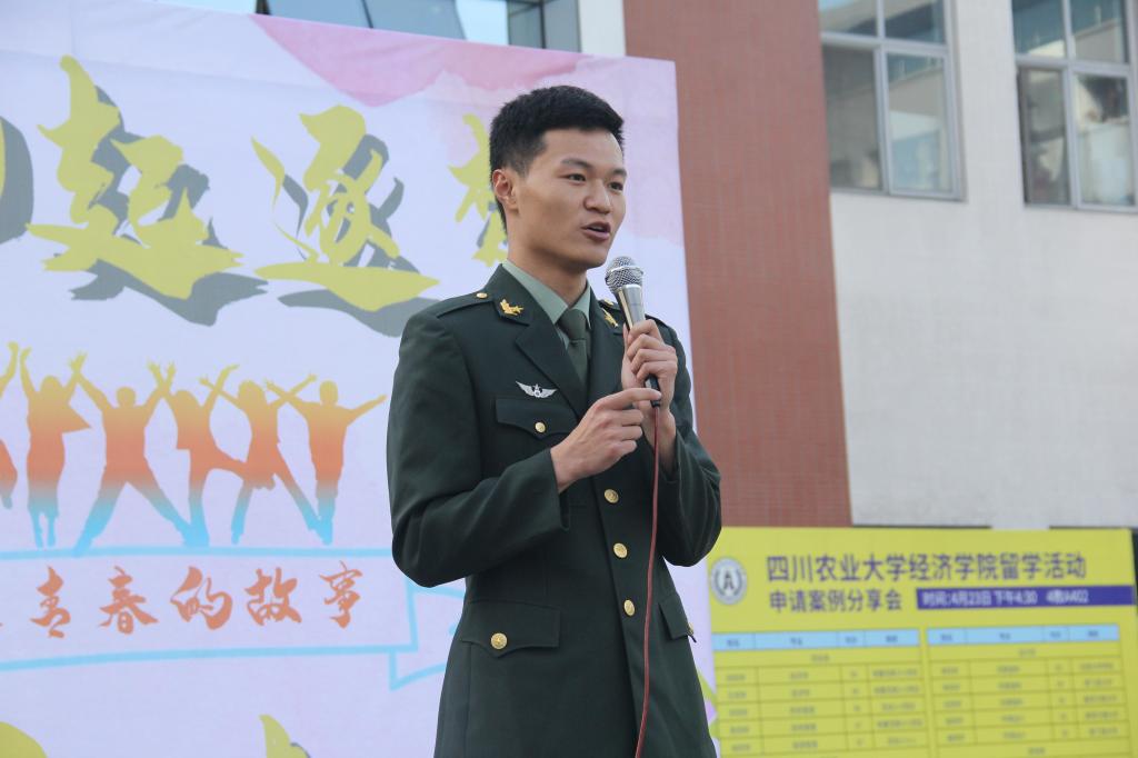 “不怕大家笑话,大一下学期的我,唯一上过的一节课,是一节体育游泳课,每天在寝室颓废度日,外卖和游戏简直就是我的整个生活。”没有了高中的“按部就班”,从高中进入大学,没有了“束缚”的石宇臣“放飞”着自我。“看着周围同学丰富且奋进的生活,突一天我猛然意识到,再这样下去,我的大学,乃至整个人生都将废掉!”两年前在一个同样的季节里,石宇臣感受到了青春应有的勇向。于是想通过摔打重燃青春活力的他,暂时告别了父母、告别校园、告别了老师同学,昂首走进绿色军营。“经过两年军旅生涯的磨练,我不再图享各种安逸的生活,特别的人生经历使我懂得,青春最大的财富是自立自强、奋发不止……。我们的青春责任已不是救亡图存,复兴中华是我们的己任,是我们这代人的战场,拿出属于你的那一份青春激情,而不是像我以前一样每天颓废度日。今天的我们不留遗憾,祖国美好的明天就掌握在我们的手中!我们的青春,都能够无怨、无悔、无畏、无憾!”石宇臣别样的青春经历、引得观众阵阵掌声。