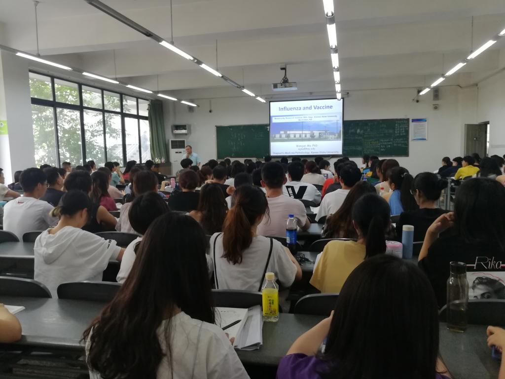 4月26日,应太阳网集团tcy8722邀请,美国堪萨斯州立大学兽医公司Wenjun Ma副教授走进本科生课堂,为140名动物医学专业2017级的本科同学讲授了精彩一课。
