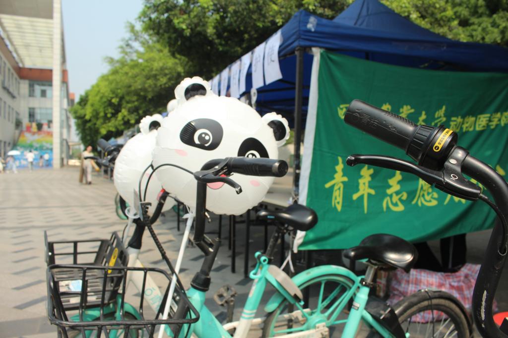 “同学们快来和熊猫骑手合影吧!”校园里突然出现了许多骑着青桔单车的“熊猫人”,他们或站着招手或直接上前“拉”人,引得同学们纷纷加入合影的队伍。熊猫骑手、“我是熊猫村守护使”宣传板、卡通熊猫气球等都成为了同学们积极合影的对象。活动现场,动医院青年志愿者协会在安排“熊猫气球”展示的基础上,还策划了“熊猫小知识”趣味竞答赢套圈机小游戏,吸引了数百名川农学子积极参与“守护熊猫村”的科普互动。