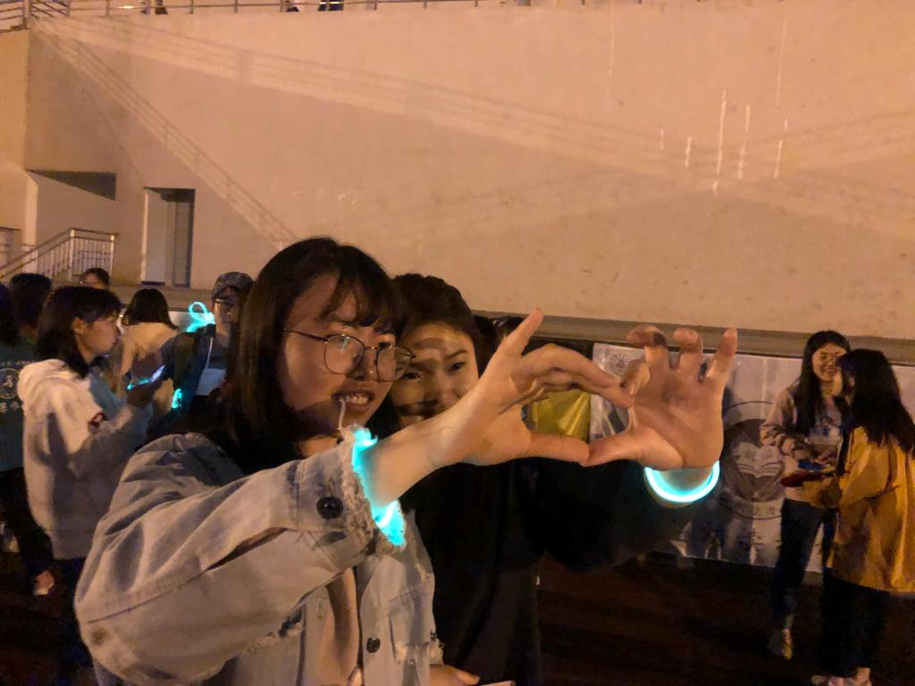 特别在“地球1小时”系列活动启动的当天,手戴硅胶荧光手环,参加夜跑的一队队动医夜跑者在操场显得格外显眼。“最终选择硅胶荧光条,是因为它更环保,符合我们的活动初衷,即使它的发光效果没有荧光漆或荧光胶带好,但通过微微亮光聚集起来传递的环保理念才会更亮眼。”夜跑中的蔡文俊感叹道。