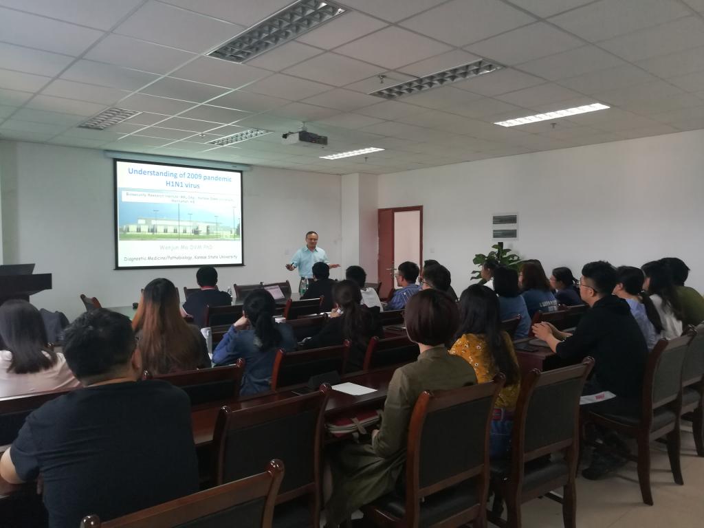 4月23日上午,美国堪萨斯州立大学副教授Wenjun Ma在7教1105会议室为广大师生带来了一场题为“Understanding of 2009 pandemic H1N1 virus(解析2009年H1N1流感大流行的原因)”的学术报告。