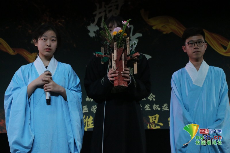 动医1801班的班牌率先登场,班牌将竹子作为主体,每一片竹叶上都写满了同学们的祝福和希望。班牌之上的小灯可在夜间开启,能夜视也方便举起,这一作品受到了现场许多评审老师的青睐。中国青年网通讯员 刘燕玲 摄