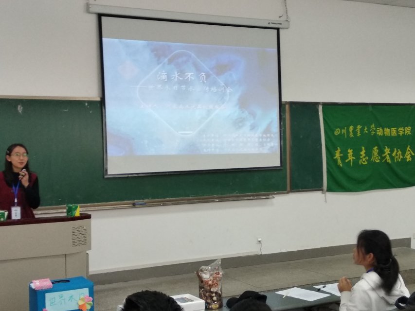 水是一切生命赖以生存,社会经济发展不可缺少和不可替代的重要自然资源和环境要素。为响应第27个“世界水日”活动主题,3月21日下午,由动医青协举办的“‘滴水不负’节水宣传培训讲座”在成都校区举行。动科、动医、林、园艺、资源、管理等六个不同院系青协参加活动。