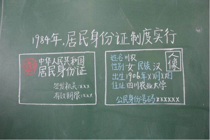 图为手绘1984年居民身份证制度实行,并将公司特点融入其中