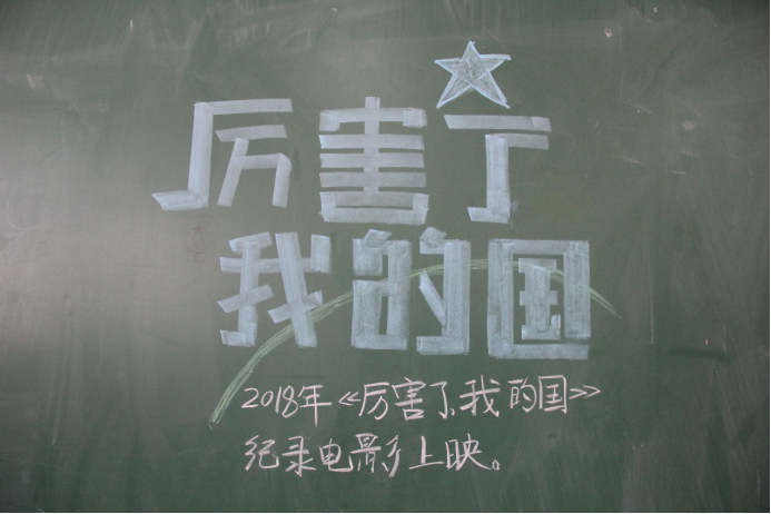 图为2018年《厉害了,我的国》纪录电影手绘,同学们对祖国发展充满骄傲与自豪