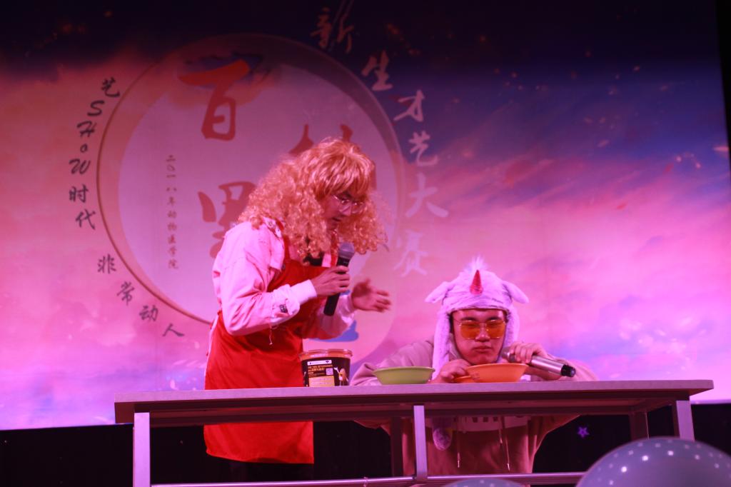 “川农,让我们不期而遇。”第一个节目《萌新追爱记》上演了一出萌新艰难坎坷的追爱历程,那还未开始,便已结束的“爱情”逗得观众捧腹。《光年之外》两位演唱者杨梓涵和邱雨暄,用饱满而富有张力的歌声征服了大片观众的心。《浅瑟鸿秀》用优美的舞姿与动人的古筝声,展现了中国古风舞的柔韧美和古乐器的绕梁悠扬,给观众视觉与听觉的双重享受,同时感受传承了千年的传统艺术之美。“你来自东或西,都没有太大关系……”《东西》的三位演唱者唱出了新生们对“和谐、奋进、幸福”公司文化的理解。
