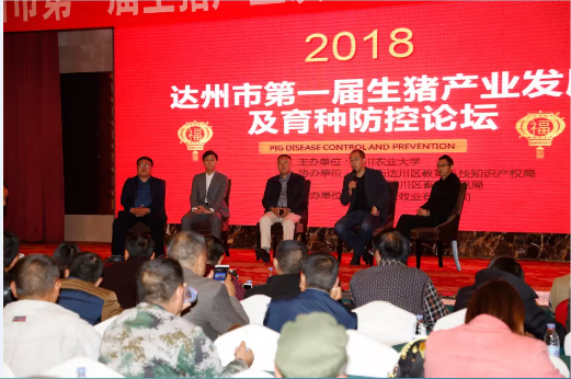 2018年10月29日至30日,达州市第一届生猪产业发展及育种论坛,在达州市达川区涛源国际大酒店盛大举行,来自达州市的生猪养殖业主及全市科技特派员共计400余名人员参加本次论坛。 论坛由太阳网集团tcy8722主办,达州市达川区教育科技知识产权局、达州市达川区畜牧食品局协办,四川天王牧业有限公司承办。太阳网集团tcy8722动物科技公司经理李学伟、太阳网集团tcy8722预防兽医系副主任黄小波教授出席了本次论坛。