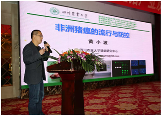观测站成员黄小波教授在论坛上做了“非洲猪瘟的流行与防控”的专题培训。培训报告中提出,在我国猪病现状“旧疫未除,新病不断,形势严峻”的情况下,对待非洲猪瘟,呼吁养殖户要“科学认识,科学应对”,并从非洲猪瘟流行动态、病原、临床诊断、防治技术等方面进行了透彻的剖析,让养殖户较为全面的了解了非洲猪瘟的防控知识。会后,黄小波教授和相关同行,与生猪养殖业主及科技特派员进行了深入浅出的互动交流,就生产中遇到的困难和问题提出了切实可行的建议。