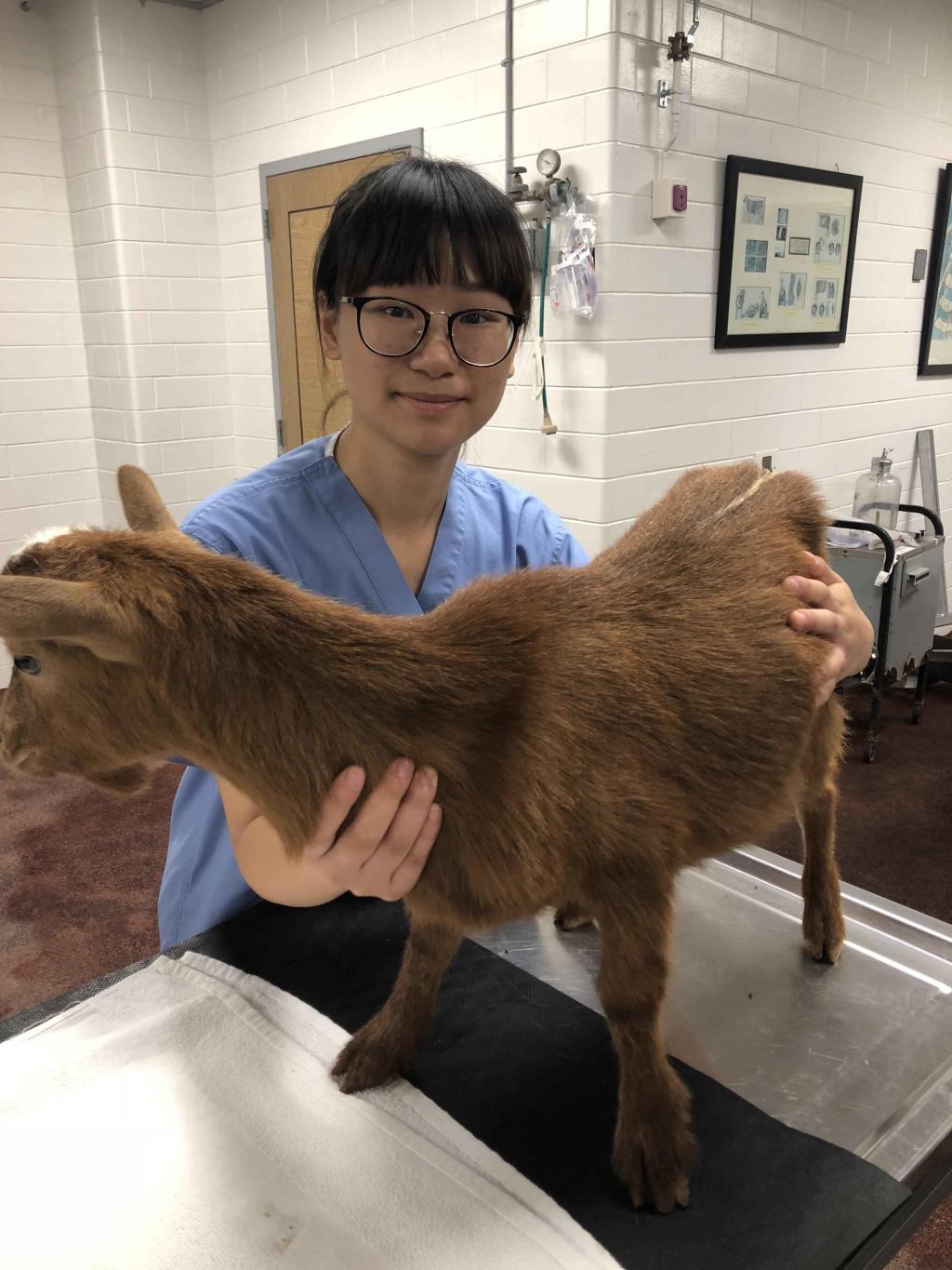 2018年的暑假,她先主持了美国普渡大学DVM员工来公司的交流会,后直接前往美国普渡大学兽医院,与美国DVM员工一同完成外科、眼科、影像、肿瘤等十多个科室的轮岗实习。“当时给我印象很深刻的事情是,在一次给一头黑安格斯牛做手术的过程中,由于手术部位位于牛的后肢,牛尾的摇摆对医生手术有较大影响,医生让我把牛尾向上绑起来。可是因为牛紧张拉肚子,手术室里全是排泄物,一片狼藉。就在我犹豫的时候,旁边一名元老级教授不顾一切,直接趴在排泄物上保定牛体。我被这种敬业精神深深感染,二话不说马上上前协助完成了任务。”这样的经历在这次美国之行中还有许多,这让她感悟颇深:“我觉得想要成为一名优秀的兽医师,不仅仅要掌握完善的学科知识体系,拥有探索钻研的精神,更重要的是,要拥有一颗甘于奉献的心。”