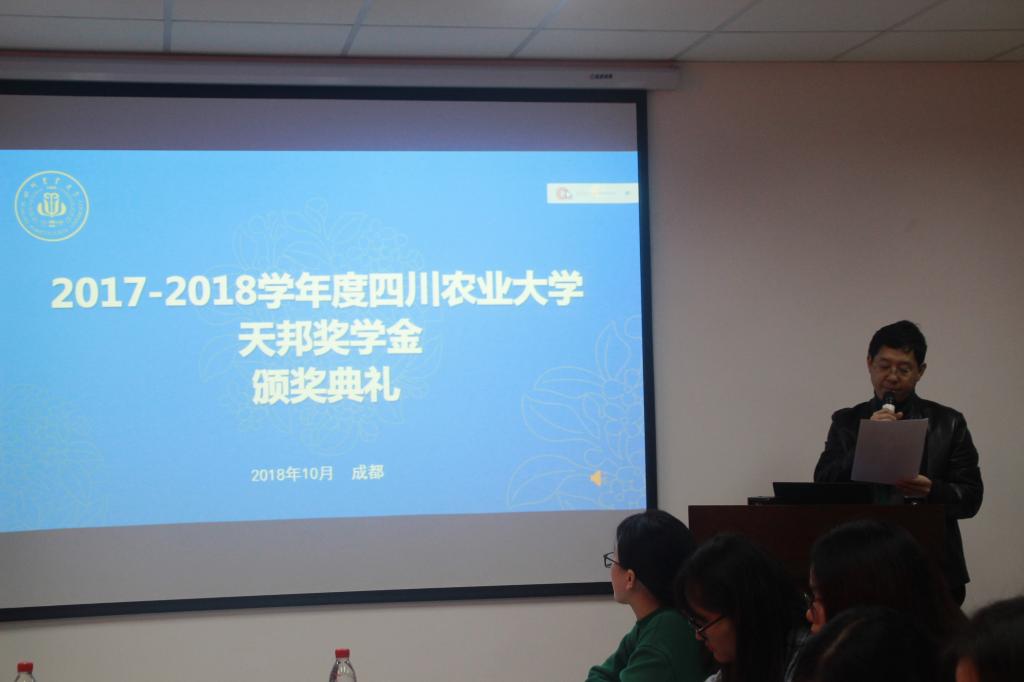 曹三杰宣读表彰决定及获奖名单,鼓励同学们珍惜荣誉、锐意进取、不忘初心,始终秉持“川农大精神”,成长为国家社会主义现代化的可靠建设者。共有20名本科生、5名研究生获得奖励,每生奖学金2000元。